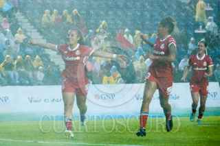 CIUDAD DE MÉXICO, 29JULIO2024.- La jugadora Cinthya Peraza, centrocampista del equipo de Toluca, anotó el primer gol durante la Jornada 3 de la Apertura 2024 contra las Águilas del América en el Estadio Ciudad de los Deportes. FOTO: GRACIELA LÓPEZ/CUARTOSCURO.COM