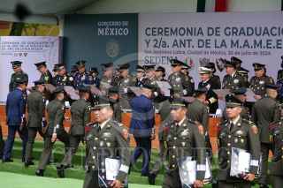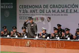 CIUDAD DE MÉXICO, 18JULIO2024.- Luis Cresencio Sandoval González, Secretario de la Defensa Nacional y Rafael Ojeda Secretario de Marina, encabezaron la ceremonia de graduación del personal que concluyó sus estudios en la Escuela Superior de Guerra, ubicada en San Jerónimo Lídice. FOTO: ROGELIO MORALES /CUARTOSCURO.COM