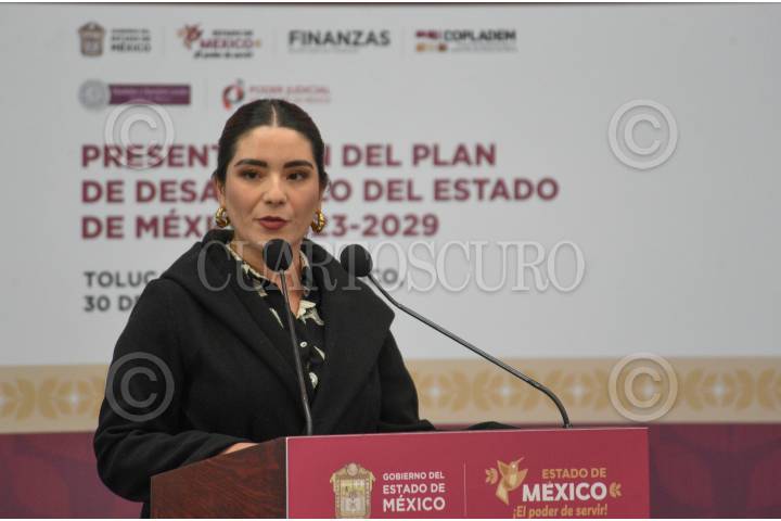 TOLUCA, ESTADO DE MÉXICO, 30JULIO2024.- Paulina Moreno García, Secretaria de Finanzas durante la presentación del Plan de Desarrollo del Estado de México 2023-2029, estructurado sobre 7 ejes, a cuatro se les denominó “Ejes del Cambio” y a tres “Ejes Transversales”, el Plan de Desarrollo surge de los Foros de Consulta Popular así como las Audiencias Ciudadanas. FOTO: CRISANTA ESPINOSA AGUILAR /CUARTOSCURO.COM