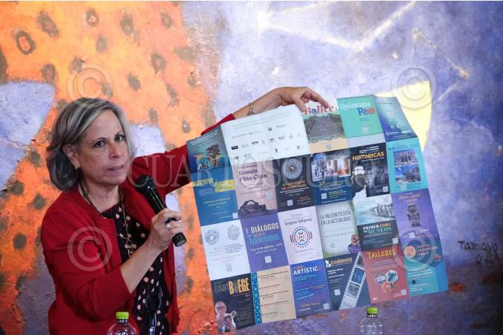 CIUDAD DE MÉXICO, 30JULIO2024.- Beatriz Quintanar Hinojosa, coordinadora Nacional de Difusión, durante una conferencia de prensa para dar a conocer el programa de la 35 Feria Internacional del Libro de Antropología e Historia (FILAH), la cual se realizó en el Museo Nacional de Antropología e Historia. FOTO: GRACIELA LÓPEZ/CUARTOSCURO.COM