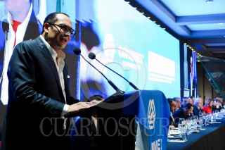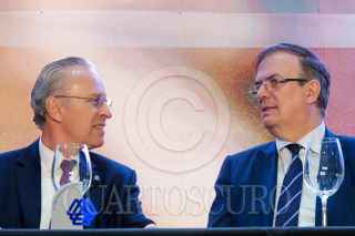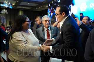 CIUDAD DE MÉXICO, 30JULIO2024.- Citlalli Hernández, secretaria general del partido Movimiento de Regeneración Nacional (MORENA), y Adal Ortiz Ávalos, nuevo presidente de la Confederación Patronal de la República Mexicana (COPARMEX), durante la ceremonia en que asumió la presidencia. FOTO: GALO CAÑAS/CUARTOSCURO.COM