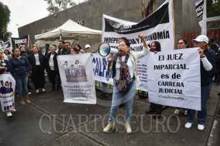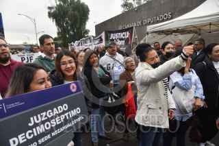 CIUDAD DE MÉXICO, 30JULIO2024.- Una representación de la base trabajadora del Poder Judicial de la Federación (PJF) protrestaron en contra de la reforma judicial al exterior de la Cámara de Diputados mientras se llevo a cabo la séptima mesa del "Diálogos nacionales sobre la reforma constitucional al poder judicial". FOTO: MARIO JASSO/CUARTOSCURO.COM