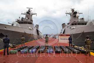 ACAPULCO, GUERRERO. 31JULIO2024.- La Secretaría de Marina a través de la Armada de México en funciones de Guardia Costera, informa que, en días pasados, personal de la Décima Segunda Región Naval, logró el aseguramiento de 45 costalillas con un peso estimado de 1,500 (un mil quinientos) kilogramos de presunta cocaína, a aproximadamente 170 millas náuticas (135 kilómetros) al sur de Acapulco, Guerrero. Estas acciones, patrullajes de vigilancia marítima por medio de buques tipo patrulla oceánica y tipo patrulla interceptora de la Armada de México, con el apoyo de unidades aeronavales, localizando 45 costalillas balizadas a la deriva, con 30 ladrillos en el interior de cada una, conteniendo en su interior polvo blanco con las características similares de la cocaína. FOTOSEMAR/CUARTOSCURO.COM
