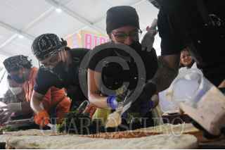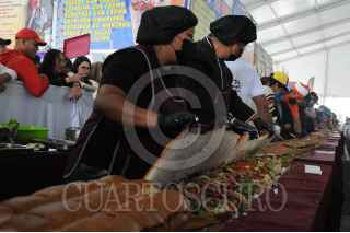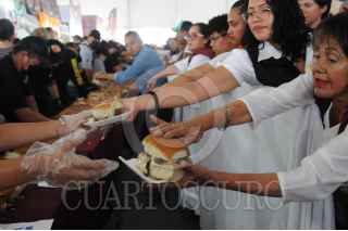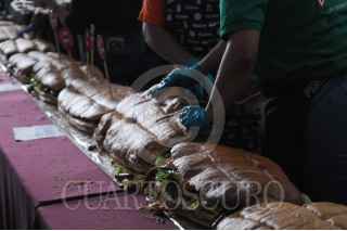 CIUDAD DE MÉXICO, 31JULIO2024. - Dos personas disfrutan de un pedazo de la mega torta de este año. FOTO: DANIEL AUGUSTO /CUARTOSCURO.COM