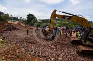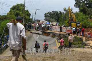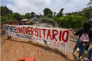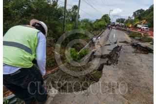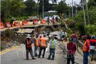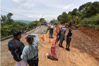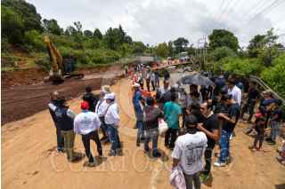 TENANCINGO, ESTADO DE MÉXICO, 31JULIO2024.- Estudiantes, vecinos y autoridades de Tenancingo se dieron cita en el kilómetro 38 de la carretera Tenango-Tenancingo en donde desde la semana pasada se presentó un hundimiento lo que provocó el cierre de esta vialidad, en donde pidieron que autoridades estatales y federales rehabiliten esta carretera a la brevedad posible, ante las afectaciones que ha sufrido la población en general, sobre todo económicamente; la Secretaría de Infraestructura, Comunicaciones y Transportes (SICT) inició los trabajos de rehabilitación de un carril alterno para el paso de al menos vehículos no pesados, de acuerdo a autoridades municipales por esta vía llegan a circular hasta 18 mil autos. FOTO: CRISANTA ESPINOSA AGUILAR /CUARTOSCURO.COM
