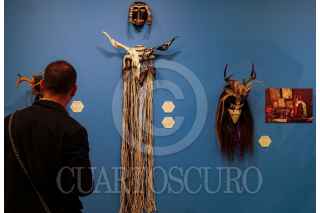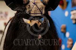CIUDAD DE MÉXICO, 31 DE JULIO DE 2024 – Yessica Morales, directora del Museo Nacional de Culturas Populares, junto con los curadores de la exposición Marta Turok y José Luis Correa, inauguraron la muestra “Mascareros de Guerrero: de lo Tradicional y lo Fantástico” en la Sala Cristina Payán del Museo Nacional de Culturas Populares. La exposición, que presenta más de 200 máscaras y destaca el trabajo artesanal de los artesanos especializados del estado de Guerrero, estará disponible hasta marzo de 2025. FOTO: ALICE MORITZ / CUARTOSCURO.COM