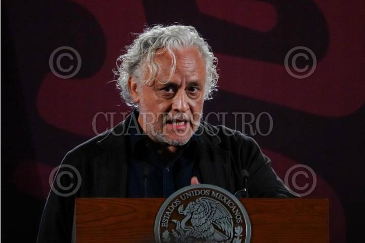 CIUDAD DE MÉXICO, 01AGOSTO2024.- El artista mexicano Gabriel Orozco durante la conferencia matutina desde Palacio Nacional en la que se presentaron los avances del Proyecto Cultural Chapultepec, una de las apuesta culturales insignia de la administración para la conexión de las cuatro secciones del Bosque de Chapultepec FOTO: GALO CAÑAS/CUARTOSCURO.COM