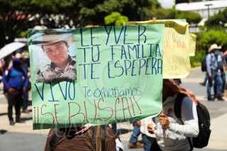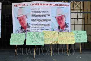 TUXTLA GUTIERREZ, CHIAPAS, 01AGOSTO2024.- Pobladores del ejido Nuevo León perteneciente al municipio de Teopisca, Chiapas, marcharon en la capital del estado para exigir la aparición con vida de Leyver Berlín Guillén Espinosa desaparecido desde el pasado miércoles 24 de Julio. A las afueras del Palacio de Gobierno los familiares y decenas de pobladores se manifestaron con pancartas y mensajes de ayuda. De acuerdo a las declaraciones el último contacto que se tuvo con el joven se supo que estaba en la tienda de Bodega Aurrera de dicho municipio comprando cosas para su negocio, sin embargo, después perdieron toda comunicación. Piden al gobierno ayuda para poder dar con su paradero y pueda volver a casa sano y salvo. En Chiapas continúa a la alza el número de personas desaparecidas. FOTO: ISABEL MATEOS /CUARTOSCURO.COM