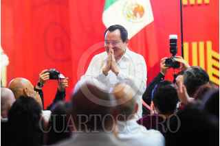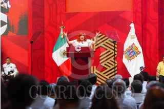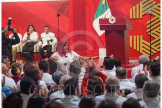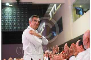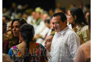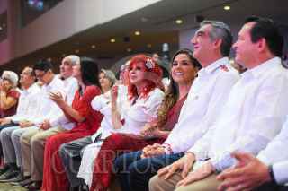CAMPECHE, CAMPECHE, 01AGOSTO2024.- Américo Villareal, gobernador de Tamaulipas, asistió al tercer informe de Layda Sansores, que se realizó en el Centro de Convenciones Campeche XXI. FOTO: MICHAEL BALAM/CUARTOSCURO.COM