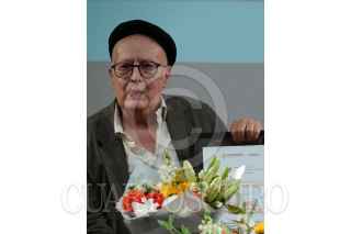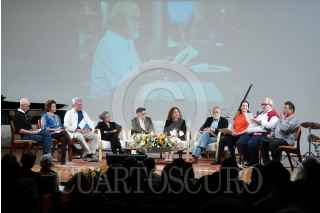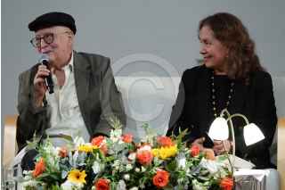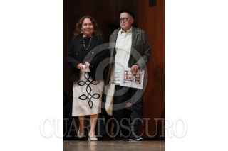 CIUDAD DE MÉXICO, 01AGOSTO2024.- La artista Berta Kolteniuk y el artista plástico Gabriel Macotela durante el homenaje del pintor tapatío con motivo de sus 50 años de trayectoria artística en la Sala Manuel M. Ponce del Palacio de Bellas Artes. FOTO: GALO CAÑAS/CUARTOSCURO.COM