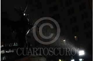 CIUDAD DE MÉXICO, 02AGOSTO2024.- Uno de los Pegasos que custodian el Palacio de Bellals Artes luce iluminado por uno de los reflectores en el que se observan las ultimas gotas de lluvua de la zona centro. FOTO: GALO CAÑAS/CUARTOSCURO.COM