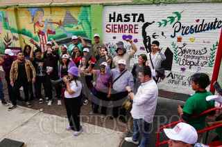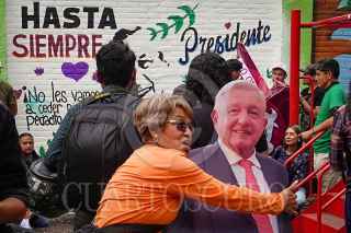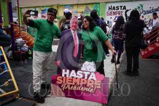 CIUDAD DE MÉXICO, 03AGOSTO2024.- Simpatizantes de Andrés Manuel Lopez Obrador crearon el movimiento, Hasta siempre presidente a dos meses de la salida del mandatario Andrés Manuel Lopez Obrador, en este sentido asistentes a la gira de agradecimiento de Clara Brugada, jefa de Gobierno electa, aprovechan imagen del actual presidente para tomarse fotografías con la imagen de tamaño real en la alcaldía Gustavo A. Madero. FOTO: ROGELIO MORALES /CUARTOSCURO.COM