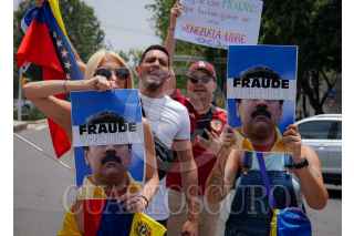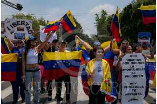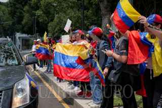 CIUDAD DE MÉXICO, 03 AGOSTO 2024.- Cientos de venezolanos protestaron frente al Monumento Simón Bolívar este sábado para pedir la salida de Nicolás Maduro del poder, después de las elecciones que se llevaron a cabo en el país el domingo 28 de julio. Los manifestantes interrumpieron el tráfico de manera intermitente. FOTO: ALICE MORITZ /CUARTOSCURO.COM