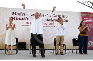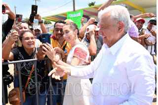 MINATITLÁN, VERACRUZ, 04AGOSTO2024.- Simpatizantes del Presidente de México muestran ejemplares el último libro del tabasqueño, "Gracias", durante la inauguración del camino Minatitlán-Hidalgotitlán, en Unidad Deportiva “Benito Juárez”. FOTO: PRESIDENCIA/CUARTOSCURO.COM