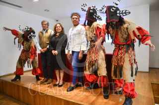CIUDAD DE MÉXICO, 06AGOSTO2024.- Salvador López, director del Ballet Folklórico de México de Amalia Hernández; Lucina Jiménez, directora general del INBAL, y José Roberto Dámaso, director de Diablos de Cuajinicuilapa, durante la conferencia de prensa en la que se dieron los pormenores de la función de Gala del Ballet Folklórico de México de Amalia Hernández con los Diablos de Cuajinicuilapa del próximo 16 de agosto como parte del 90 aniversario del Palacio de Bellas Artes. FOTO: MARIO JASSO/CUARTOSCURO.COM