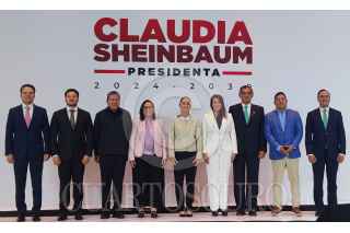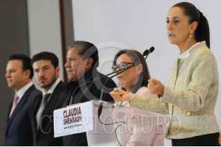 CIUDAD DE MÉXICO, 06AGOSTO2024. - Claudia Sheinbaum, virtual presidenta electa, da un mensaje a medios luego de reunirse con los gobernadores del norte. FOTO: DANIEL AUGUSTO /CUARTOSCURO.COM