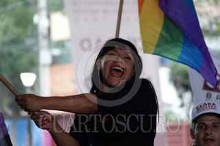 CIUDAD DE MÉXICO, 06AGOSTO2024.- Simpatizante de la comunidad LGBTTTIQ+ mostraó su apoyo a Clara Brugada, virtual Jefa de Gobierno, durante una Asamblea realizada en la Macroplaza de la alcaldía Iztapalapa. FOTO: GRACIELA LÓPEZ /CUARTOSCURO.COM