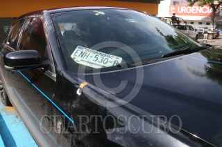CUERNAVACA, MORELOS, 07AGOSTO2024.- Acercamiento a un impacto de arma de alto calibre en la puerta de un automóvil. La madrugada de este día un automovilista que fue atacado a balazos al norte de la capital, llegó manejando su vehículo, un Chrysler 300c, a las instalaciones de la Cruz Roja, donde recibió atención medica. El vehículo portaba las placas ENH-530-B del estado de Chihuahua, en varias partes del automóvil es podían ver pegatinas de una cuenta de red social con el nombre de usuario IVAN_GASTELUM.69. Policía del municipio y de la Guardia Nacional llegaron al sitio para resguardar la unidad, mientras peritos e investigadores de la Fiscalía levantaron indicios para la averiguación que inicia. FOTO: MARGARITO PÉREZ RETANA/CUARTOSCURO.COM