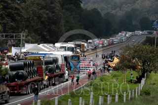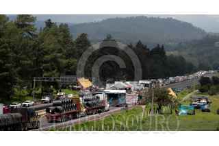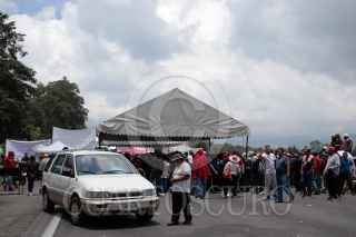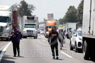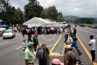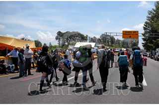 SANTA RITA TLAHUAPAN, PUEBLA, 07AGOSTO2024.- Turistas y habitantes optaron por caminar debido al bloqueo que pobladores de Santa Rita Tlahuapan mantuvieron en la autopista México-Puebla ante la supuesta falta de pago por parte de la Secretaría de Comunicaciones y Transportes (SCT) de los predios expropiados durante la construcción de dicha vialidad.. FOTO: MIREYA NOVO/CUARTOSCURO.COM