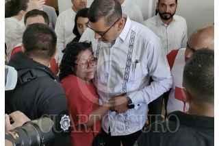 ZACATECAS, ZACATECAS, 07AGOSTO2024.- Virginia de la Cruz, madre de joven asesinado en noviembre del 2023, pidió justicia e interrumpió el discurso que daba el gobernador de Zacatecas, David Monreal Ávila, quien presentaba los resultados en combate al delito. El caso de esta madre cobró notoriedad cuando el 11 de julio pasado, irrumpió en el Congreso del Estado, para denunciar que la Fiscalía del Estado tardó ocho meses en entregarle el cuerpo de su hijo José Alejandro de la Cruz López de 21 años, el cual había ingresado al Servicio Médico Forense incluso desde antes de que presentara la denuncia por su desaparición. Después de haber sido sacada del recinto por personal de seguridad, fue atendida por Cristian Paul Camacho, Fiscal General del Estado. FOTO: ESPECIAL /CUARTOSCURO.COM