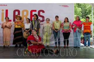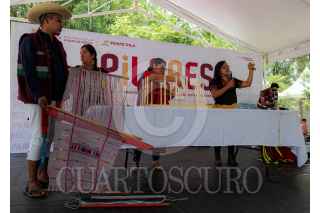 CIUDAD DE MÉXICO, 07AGOSTO 2024.- Se llevó a cabo una clase magistral y muestra de Telar de Cintura durante la inauguración del Festival PILARES Chapultepec: Naturaleza y Cultura, en la Plaza Jacarandas del Complejo Cultural Los Pinos. La jornada se centró en el arte textil y el folklore mexicano. Se realizó una feria de emprendimiento con productos hechos en los talleres de PILARES, además de presentaciones de danza folklórica y música en vivo. Dicho festival se lleva a cabo desde el 7 hasta el 11 de agosto. FOTO: ALICE MORITZ /CUARTOSCURO.COM