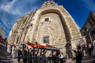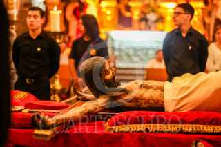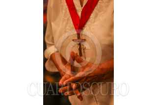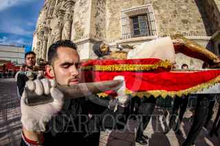 SALTILLO, COAHUILA, 07AGOSTO2024.- La imagen del Santo Cristo fue trasladado de la Catedral de Saltillo hacia la Capilla del Santo Cristo Saltillo, en medio de una procesión religiosa, cientos de feligreses acompañaron al Crucifijo gigante en su recorrido. La misa fue encabezada por el obispo emérito Raúl Vera. FOTO: ALEJANDRO RODRÍGUEZ/CUARTOSCURO.COM