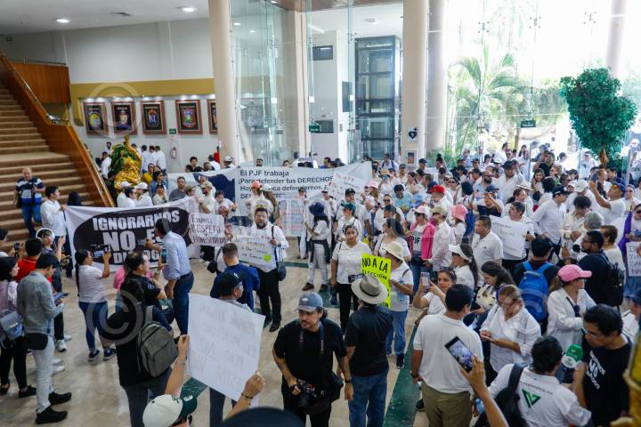 CULIACÁN, SINALOA, 08AGOSTO2024.- Trabajadores del Poder Judicial, abogados y sociedad en general se manifiestan en contra de la reforma al Poder Judicial en el Congreso del Estado. Los ánimos subieron ante la negativa de permitirles el acceso al Salón Constituyente, donde se realizó el Foro sobre Reforma Judicial. FOTO: JOSE BETANZOS/CUARTOSCURO.COM