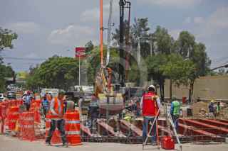 GUADALAJARA, JALISCO. 08AGOSTO2024.- Avanzan las obras para reparar el socavón en la zona de Adolfo López Mateos y Periférico, personal de la Secretaria de Infraestructura y Obras Publicas (SIOP), del Gobierno del Estado trabajan a marchas forzadas para reabrir la circulación en tan importante arteria vehicular de la ciudad. FOTO: FERNANDO CARRANZA GARCIA / CUARTOSCURO.COM