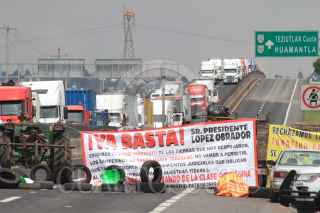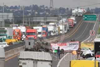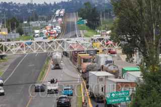 APIZACO, TLAXCALA, 08AGOSTO2024.- Aspecto de la línea de camiones de carga que llevan varados en el sitio por casi 48 horas, esto debido al bloqueo carretero que sostiene un grupo de campesinos y ejidatarios de las comunidades de Santa María Texcalac. Los campesinos decidieron cortar la circulación como una manera de presión para que se les paguen sus tierras, ya que hace años fueron compradas para la construcción de la carretera. Las imágenes fueron realizadas en la importante vía "Libramiento Apizaco-Huamantla" que comunica a estas importantes ciudades con la Ciudad de México y el puerto de Veracruz. FOTO: J. GUADALUPE PÉREZ/CUARTOSCURO.COM