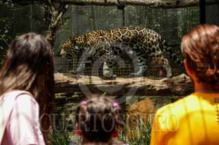 CIUDAD DE MÉXICO, 08AGOSTO2024.- La jaguar hembra África que habita el Centro de Conservación de la Vida Silvestre de Chapultepec se observa dentro de su hábitat. El pasado marzo, dio a luz a dos hembras, una de color melánico como el padre otra pinta, y el macho (también melánico). FOTO: GALO CAÑAS/CUATORSCURO.COM