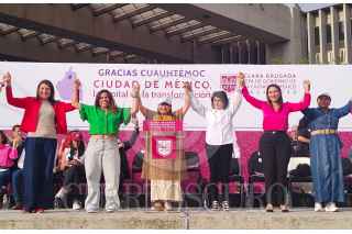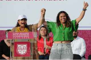 CIUDAD DE MÉXICO, 08AGOSTO2024.- Clara Brugada, jefa de gobierno electa y Caty Monreal,ex candidata a la alcaldía Cuauhtémoc, encabezan el grupo de mujeres que compitieron por un cargo público en las elecciones pasadas dentro de la demarcación. FOTO: DANIEL AUGUSTO/ CUARTOSCURO.COM