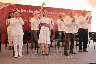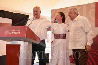 CABO SAN LUCAS, BAJA CALIFORNIA SUR, 10AGOSTO2024.- Víctor Manuel Castro Cosio, gobernador de Baja California Sur, Claudia Sheinbaum Pardo, virtual presidenta electa de México, y Andrés Manuel López Obrador, presidente de México, encabezaron la inauguración de la clínica hospital del Instituto de Seguridad y Servicios Sociales de los Trabajadores del Estado (ISSSTE) en la entidad. FOTO: CORTESÍA/CUARTOSCURO.COM