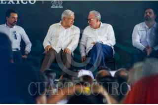 El presidente Andrés Manuel López Obrador brinda su respaldo al Gobernador Rubén Rocha Moya, luego de que se diera a conocer a través de una carta difundida por el abogado de Ismael "Mayo" Zambada (actualmente preso en Estados Unidos), que su cliente fue emboscados en una supuesta cita con el mandatario estatal, a la cual también asistió Héctor Melesio Cuén Ojeda (quién fue asesinado),esto para resolver las diferencias en torno a la Universidad Autónoma de Sinaloa. FOTO: JOSÉ BETANZOS/CUARTOSCURO.COM