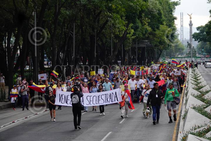 CIUDAD DE MÉXICO, 10AGOSTO2024.- La comunidad venezolana en México, realizo una marcha en protesta para pedir la salida de Nicolás Maduro del poder después de las elecciones que se llevaron a cabo en el país el domingo 28 de Julio. Los manifestantes caminaron desde el Angel de la Independencia hasta el Monumento a la Revolución. FOTOS: ROGELIO MORALES /CUARTOSCURO.COM