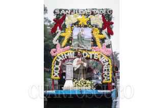 CIUDAD DE MÉXICO, 11AGOSTO2024.- Con apoyo de la fundación Simi Las reliquias de San Judas continúan su recorrido desde el 29 de julio que arribó a la ciudad y hoy visita los embarcaderos de Xochimilco para llegar a su catedral. El itinerario de las reliquias termina el próximo 28 de agosto en Puebla. FOTO: ANDREA MURCIA /CUARTOSCURO.COM