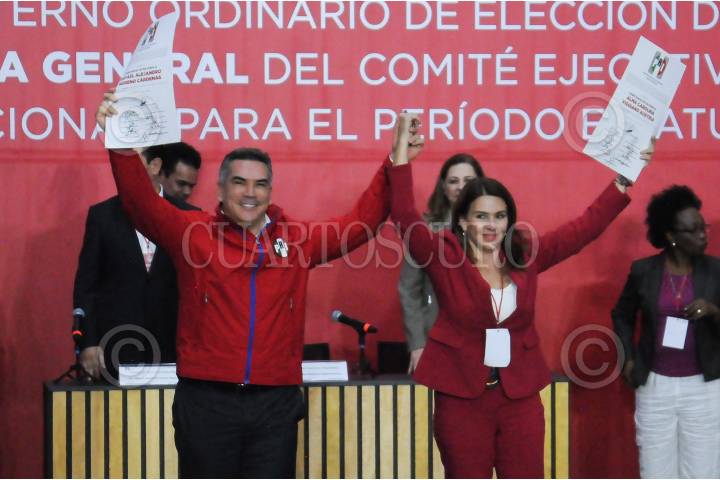 CIUDAD DE MÉXICO, 11AGOSTO2024. - Alejandro Moreno y Carolina Viggiano reciben sus constancias que los acreditan como nuevo presidente y secretaria general del PRI. FOTO: DANIEL AUGUSTO /CUARTOSCURO.COM