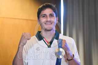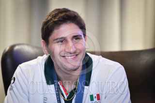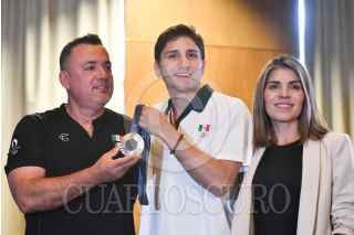 CIUDAD DE MÉXICO, 13AGOSTO2024.- Marco Alonso Verde, boxeador mexicano y ganador de la medalla de plata en las Olimpiadas de París 2024, ofreció conferencia de prensa para compartir con los medios de comunicación su experiencia en la justa deportiva internacional. Lo acompañan su entrenador Radamés Hernández, y su madre Fabiola Álvarez. FOTO: MARIO JASSO/CUARTOSCURO.COM