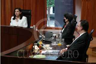 CIUDAD DE MÉXICO, 14AGOSTO2024.- Mónica Soto Aralí, magistrada presidenta del Tribunal Electoral del Poder Judicial de la Federación (TEPJF), Janine M. Otálora, magistrada, y Felipe de la Mata Pizaña, magistrado, durante la sesión ordinaria en la que por votación unánime se acordó la entrega de constancia de mayoría a Claudia Sheinbaum, virtual presidenta electa de México. FOTO: GALO CAÑAS/CUARTOSCURO.COM