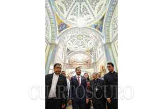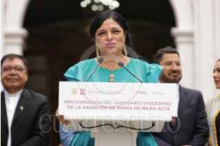 CIUDAD DE MÉXICO, 14AGOSTO2024.- El Jefe de Gobierno, Martí Batres Guadarrama, y la secretaria de Cultura del Gobierno de México, Alejandra Frausto Guerrero, entregaron las obras de restauración del Santuario de la Asunción de María, ubicado en la Alcaldía Milpa Alta, realizadas a través de la Comisión para la Reconstrucción de la Ciudad de México, en beneficio de 152 mil 685 habitantes, como parte de la rehabilitación de templos dañados por el sismo del 19 de septiembre de 2017, con el objetivo de salvaguardar el patrimonio histórico, artístico y cultural de los pueblos originarios. FOTO: GOBIERNO DE LA CIUDAD/CUARTOSCURO.COM