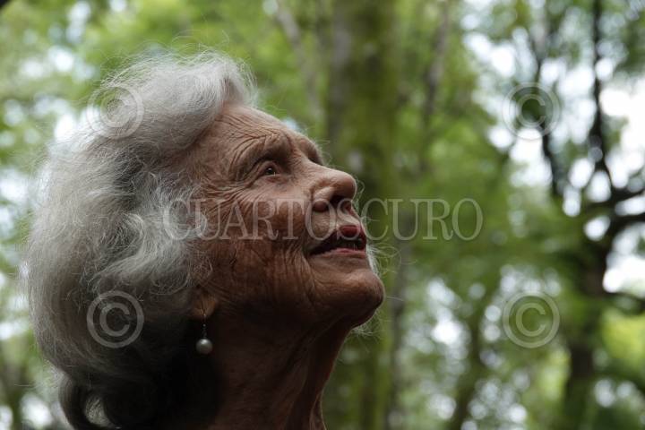 CIUDAD DE MÉXICO, 14AGOSTO204.- La escritora Elena Poniatowska durante el recorrido de la exposición "Homenaje Fotográfico a Elena Poniatowska", que alberga imágenes de 19 fotógrafas mexicanas en la Galería Abierta Grutas de las Rejas del Bosque de Chapultepec, en donde será exhibida hasta el próximo 16 de septiembre. FOTO: GRACIELA LÓPEZ /CUARTOSCURO.COM