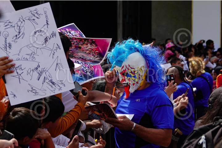 CIUDAD DE MÉXICO, 14AGOSTO2024.- El luchador Psycho Clow, durante su llegada a la Basílica de Guadalupe como parte de una peregrinación que partiera del Auditorio Nacional. FOTO: ROGELIO MORALES /CUARTOSCURO.COM