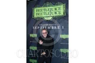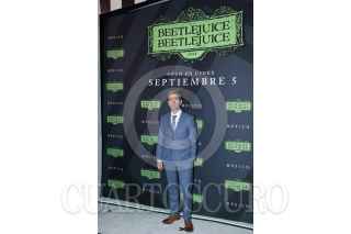 NAUCALPAN, ESTADO DE MÉXICO, 14AGOSTO2024. El productor Tommy Harper durante el Fan Event y alfombra blanco y negro de la película “Beetlejuice, Beetlejuice”, en su gira de promoción mundial, previo a su estreno en cines. FOTO: EDGAR NEGRETE LIRA/CUARTOSCURO.COM