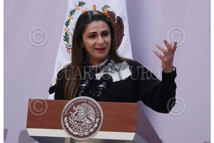 CIUDAD DE MÉXICO, 15AGOSTO2024.- Ana Gabriela Guevara, directora de la CONADE, durante su participación en el Abanderamiento de la Delegación Mexicana, realizada en el Patio Central de Palacio Nacional. FOTO: GRACIELA LÓPEZ /CUARTOSCURO.COM