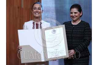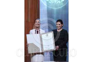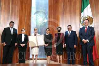 CIUDAD DE MÉXICO, 15AGOSTO2024.- Claudia Sheinbaum, Presidenta Electa de México, recibió la constancia de mayoría en las elecciones del pasado 2 de junio. El reconocimiento le fue entregado por Mónica Soto, magistrada presidenta del Tribunal Electoral del Poder Judicial de la Federación (TEPJF), en sesión solemne. FOTO: TEPJF/CUARTOSCURO.COM