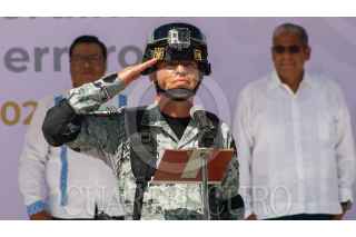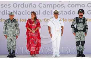CHILPANCINGO, GUERRERO. 16AGOSTO2024.- En Chilpancingo, se realizó la Ceremonia de "Toma de Protesta, Posesión al Cargo y Protesta de Bandera" del Comisario Jefe Ulises Orduña Campos, como Coordinador Estatal de la Guardia Nacional en Guerrero, relevando del mando al comisario Víctor Fernández Mondragón. La gobernadora Evelyn Salgado Pineda, comentó que la Guardia Nacional se ha consolidado en Guerrero como la punta de lanza de la estrategia de construcción de paz. FOTO: DASSAEV TÉLLEZ/CUARTOSCURO.COM