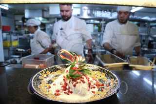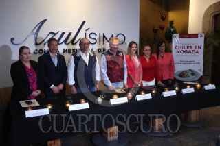 CIUDAD DE MÉXICO, 16AGOSTO2024. Chefs del restaurante Azulísimo preparan el tradicional chile en Nogada como parte de la presentación del cuarto Festival de Chiles en Nogada del Centro Histórico; en el cual participan 80 restaurantes del primer cuadro de la ciudad, que ofrecen el tradicional platillo, del 16 de agosto al 30 de septiembre. FOTO: EDGAR NEGRETE LIRA/CUARTOSCURO.COM