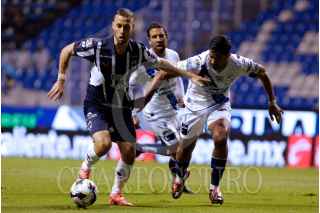 PUEBLA, PUEBLA, 16AGOSTO2024.- Sergio Canales (Monterrey) y Diego De Buen (Puebla) durante el partido entre el Club Puebla y rayados de Monterrey, correspondiente a la jornada 16 del torneo Apertura 2024 de la Liga BBVA MX, celebrado en el Estadio Cuauhtémoc, que culminó con un triunfo de 2-1 por parte de los visitantes. FOTO: MIREYA NOVO/ CUARTOSCURO.COM