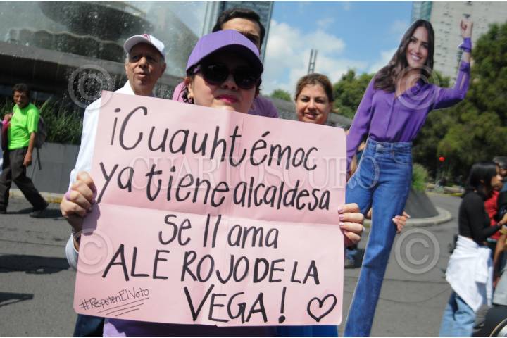 CIUDAD DE MÉXICO, 18AGOSTO2024. - Los simpatizantes de Alessandra Rojo de la Vega llegaron a las inmediaciones de la Diana Cazadora donde la alcaldesa electa se reunirá con ellos. FOTO: DANIEL AUGUSTO /CUARTOSCURO.COM
