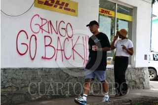 OAXACA, OAXACA, 18AGOSTO2024.- En Oaxaca las paredes hablan y son una muestra del sentir de la sociedad respecto a la gentrificación que crece cada día en la ciudad capital. Entre carteles que ofrecen servicios, bienes raíces y anuncian galerías o talleres, principalmente en inglés, se encuentra arte urbano que denuncia el encarecimiento de servicios, la falta de agua que viven pobladores locales, el encarecimiento del alquiler y vivienda, entre otras causas de este fenómeno social que ha ido cambiando el contexto de la ciudad. FOTO: CAROLINA JIMÉNEZ/CUARTOSCURO.COM