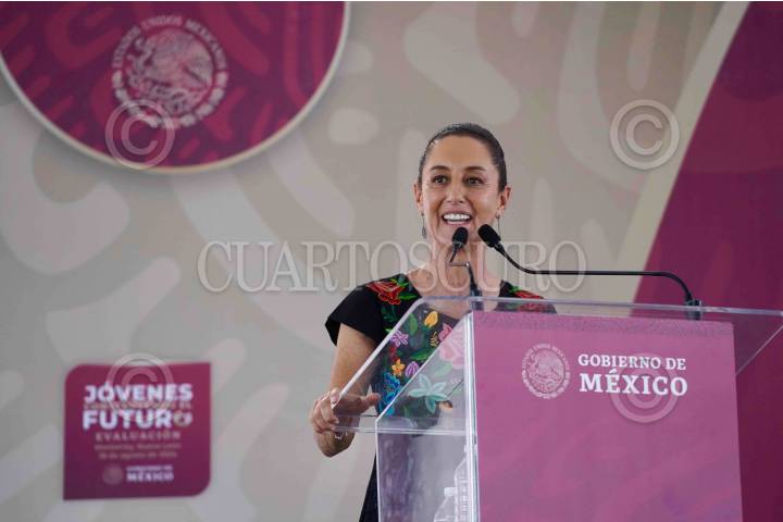 MONTERREY, NUEVO LEÓN, 18AGOSTO2024.- Claudia Sheinbaum, Presidenta Electa de México; durante la supervisión del programa Jóvenes Construyendo el Futuro, que se realizó en la explanada de los Héroes. FOTO: PRESIDENCIA/CUARTOSCURO.COM